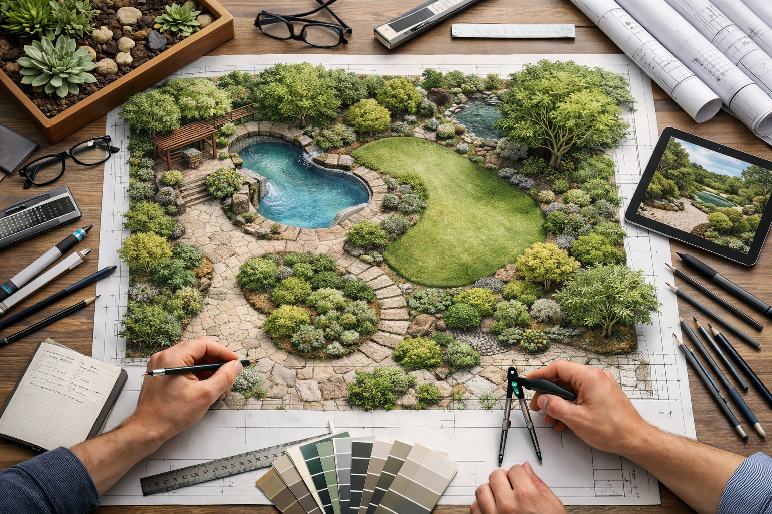 Every great outdoor space begins with a thoughtful plan. We work closely with you to design a landscape that fits your style, needs, and budget. Our design services include: